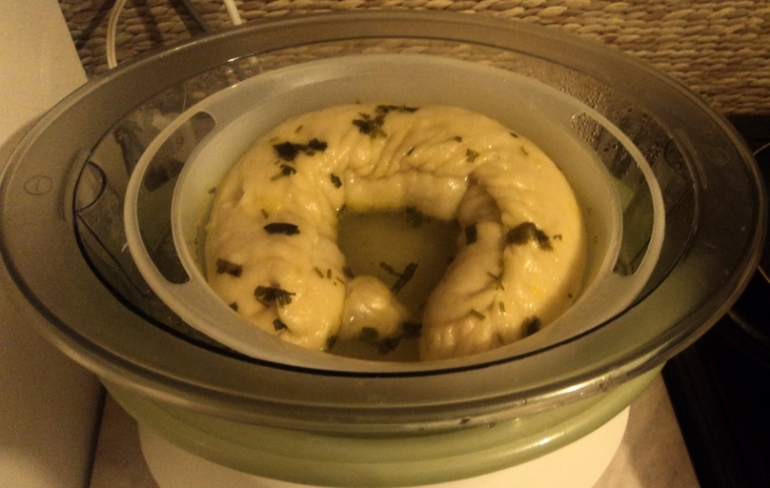 Итого на 4 маленьких "ханумчика"(под размер пароварки)- рублей 200. Тесто замесить как на пельмени(я замешиваю просто муку с водой,такое тесто самое удобное для меня).Положить тесто в пакет и оставить на полчасика.Сделать фарш.Куриное филе прокрутить,добавить жареный лук,молоко,соль и приправы.Тесто разделить на 4 части ,каждую тонко раскатать(как на пельмени),выложить фарш,скрутить рулетик.Далее с ним можно делать что угодно.Я замораживаю часть,чтоб сын мог сам доставать из морозилки и готовить себе в пароварке когда родителей нет дома.