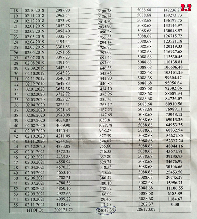 В первом платежей 60 до мая 2022 года, уменьшился основной долг и платежей стало 55 до ноября 2021
