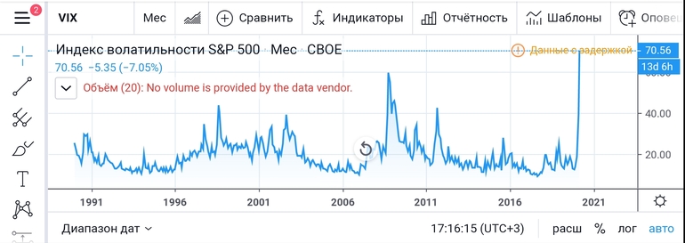 Что там доллар. Это индекс волатильности, он же индекс страха, показывающий, что подобной опы в мировых масштабах наша история ещё не знала.