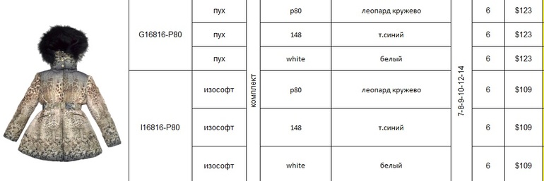 Коллекцию видела в живую,она шикарная без преувеличения!!!! В этом году появились самые классные и неизбитые расцветки: лео-кружево,жирафа,снежный барс,зебра- просто восторг!!!! Мальчиков тоже порадовали красотой,куртки ,комплекты и парки легкие,теплые и красивые. Полукомбезы в этом году идут все на изософте.