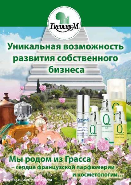Сетевой маркетинг: только обсуждение!!!Добрый день. Меня зовут Лумпен Светлана. Я - представитель французской парфюмерно-косметической компании Фредерик М. Я знаю, что многие о такой компании даже и не слышали. Но поверьте мне, с начала на слово, а потом на деле, продукция производится во Франции.