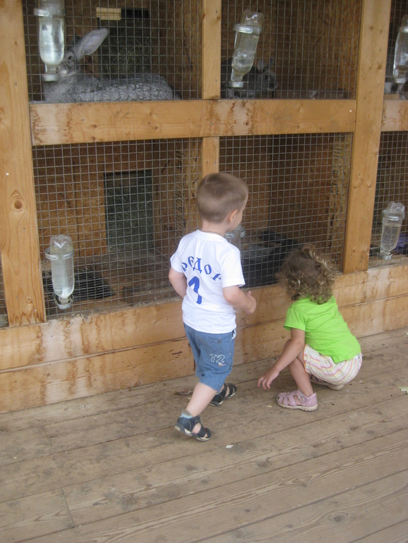 в клетках кролики разных размеров и пород, морские свинки, хомяки, крыски и др. живность.