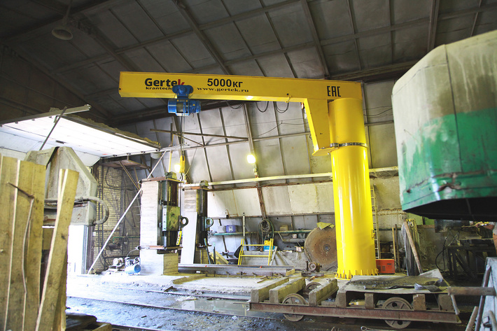 ПроизводствоВ августе 2014 г. Казанский Крановый Завод Гертек выпустил и испытал кран консольный на колонне г/п 5,0 т в Ленинградской области на предприятие по изготовлению мраморной плитки.