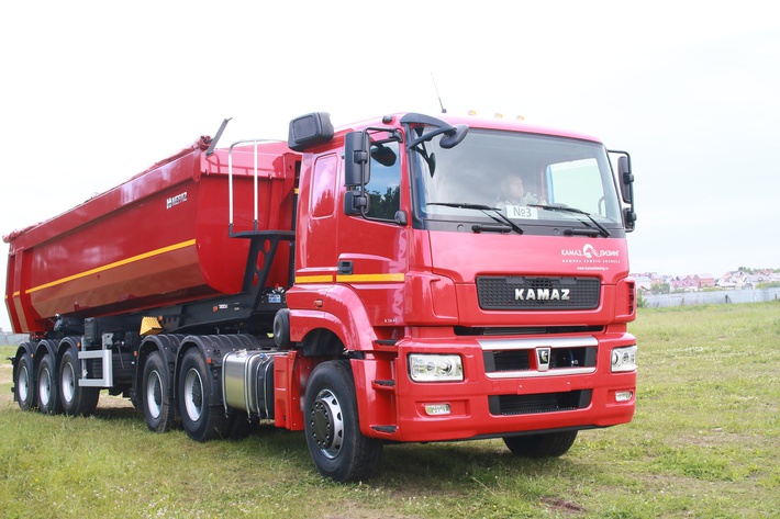 Одна из новинок компании, трёхосный седельный тягач КАМАЗ-65806, оснащён комфортабельной кабиной на 4-точечной подвеске. Экономичный 428-сильный двигатель Daimler экологического стандарта «Евро-5», коробка ZF, кондиционер, электронный тахограф, предпусковой обогреватель, автономный отопитель кабины и электрообогрев зеркал обеспечивают комфортные условия эксплуатации. Заявленный ресурс автомобиля - 800 тыс. км. Участникам тест-драйва был предложен грузовик с полуприцепом-самосвалом НЕФАЗ, предназначенным для перевозки различных сыпучих, строительных и промышленных грузов. Полная масса прицепа - 39 т., полная масса автопоезда - 74 т.