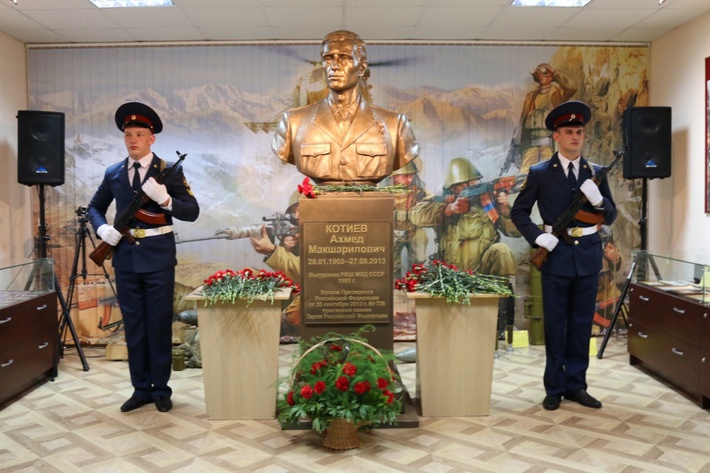 Общество1 июля в Рязани в Академии Федеральной службы исполнения наказаний прошло торжественное открытие бюста Герою Российской Федерации Ахмеду Котиеву, уроженцу Ингушетии и выпускнику рязанской высшей школы МВД СССР. А. Котиев с апреля 2011 года занимал должность секретаря Совета безопасности Республики Ингушетия, а в сентябре того же года был назначен заместителем председателя комиссии по оказанию содействия в адаптации к мирной жизни лицам, решившим прекратить террористическую деятельность на территории республики Ингушетия. В результате его работы из бандитского подполья к мирной жизни вернулись более 60 человек. 27 августа 2013 года автомобиль А. Котиева попал под обстрел боевиков, от полученных ран он скончался на месте. Ему было 52 года. Посмертно удостоен высокого звания Героя Российской Федерации. Бюст положил начало созданию музейной экспозиции в Академии, посвящённой выпускникам, погибшим при исполнении служебного долга.