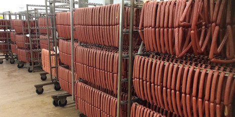Сельское хозяйствоВ поселке Большая Ижора начал работу мясоперерабатывающий комбинат по производству колбасных изделий и деликатесов мощностью 250 тонн продукции в месяц.