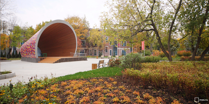 Ротонда с амфитеатром, дорожки, перголы с растениями, скамейки, детские и спортивные комплексы - все это появилось на месте пустыря в Большом Спасоглинищевском переулке. для активного и спокойного отдыха, куда могут прийти горожане разного возраста и с разными интересами, разбили по просьбе самих москвичей.