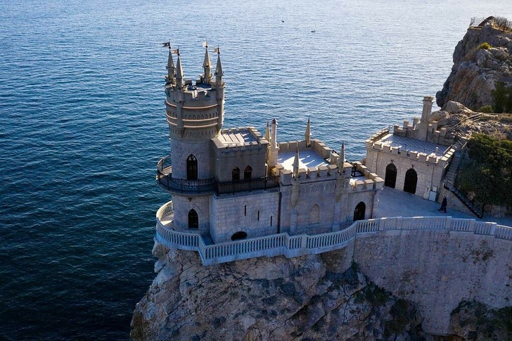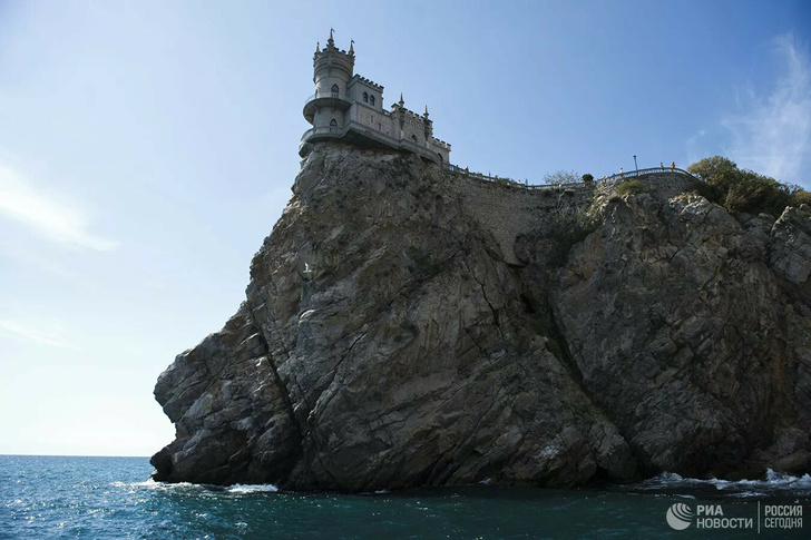 Справка: «Ласточкино гнездо» - замок из серого камня в готическом стиле с изящными башенками, выстроенный на отвесной Аврориной скале, которая находится в Гаспре - поселке на мысе Ай-Тодор. Это одна из самых высоких скал Южного побережья Крымского полуострова - высота ее 40 м. Сегодня замок находится в статусе архитектурного и исторического памятника, он - эмблема южного побережья Крыма.