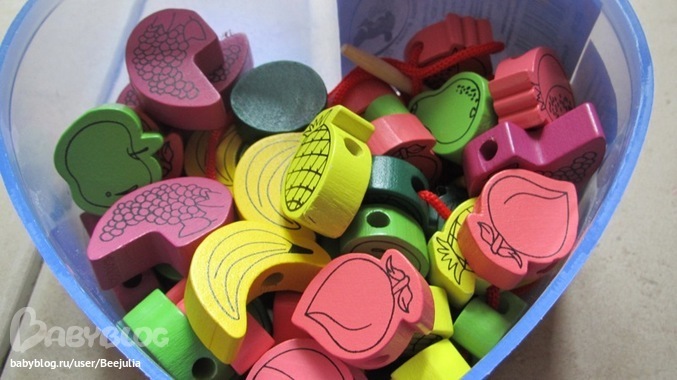 - получилось так, что бусы мы купили совсем недавно и это мое большое упущение, правда когда Степа маленький был мы играли так с макоронами, но логопед сказала, что бусы должны быть в арсенале ребенка с 9мес. Развитие речи, моторики.