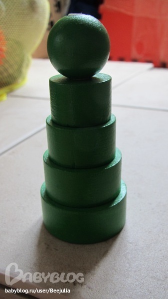 совет: не отдавайте никому свою пирамидку, думая, что ваш ребенок вырос, она может еще долго пригодиться, ну и я бы конечно покупала деревянную пирамидку с самого начала.