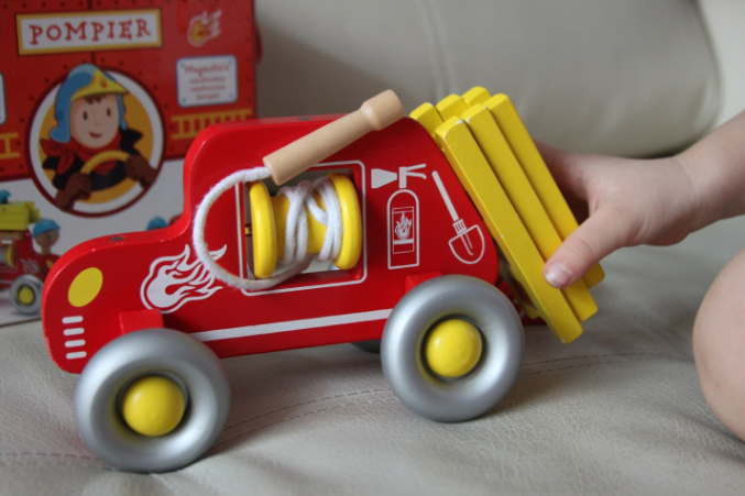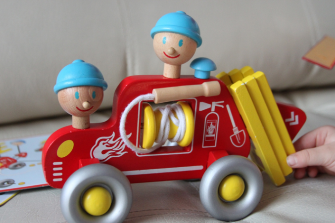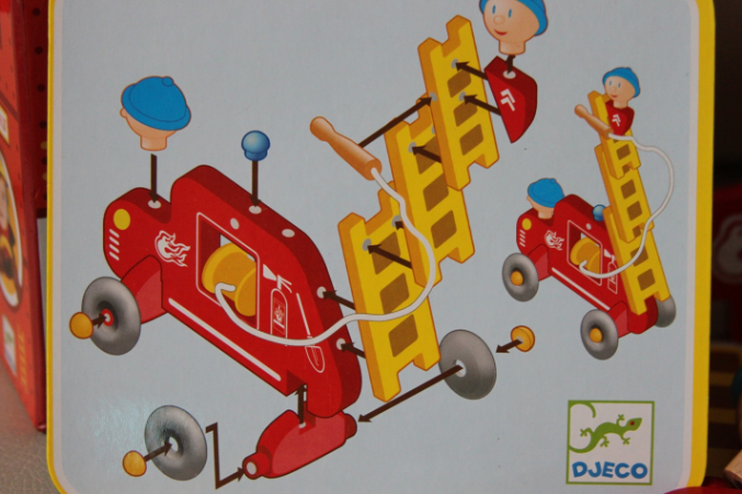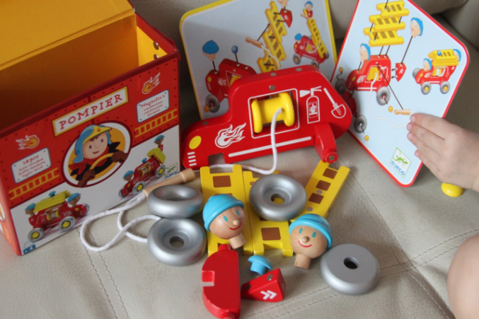 Еще один конструктор, фирмы Djeco - Пожаррная машина. Детальки крепятся с помощью магнитиков, ну несказанно полезно и для моторики, и для фантазии )) Есть 2 карточки-схемы, подсказки, как собирать тот или иной вариант машинки, а можно и самим придумать доп варианты)))