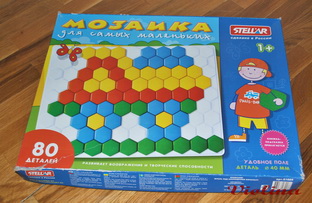 Эта мозаика с очень крупными деталями (для детей от 1 года), что является некой гарантией безопасности для детей, которые все тянут в рот. Развивает моторику, воображение и может занять ребенка надолго. Малыш в этом возрасте сможет повыкладывать, например, цветочки или дорожку для игрушечной фигурки животного.