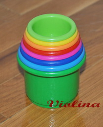 ОЧЕНЬ бюджетный вариант развивающей игрушки. С ней можно играть и на ковре(вкладывать стаканчики друг в друга, строить башню), и в ванной во время купания (малыша очень забавляет, что из разных дырочек в дне вода течет струйками), и в песочнице (прекрасные формочки, между прочим). Сложность игры можно варьировать - убирать, добавлять стаканчики. Ребенок попутно разберется в размерах, цветах и проч. и тренирует свой глазомер.
