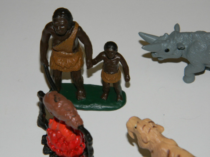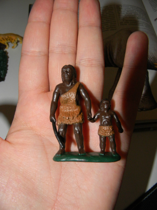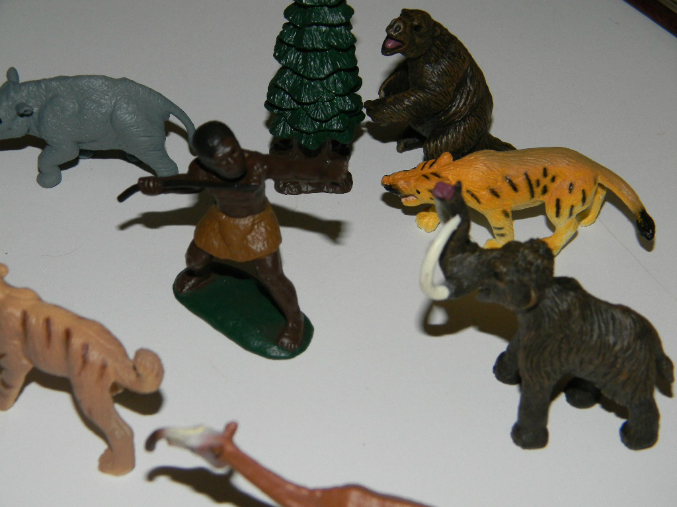 мамонт, эндрюсарх, смилодон, арсинотерий, глиптотерий, макраухения и др. ещё вулкан, костёр с жаревшимся мясом, мамонт и естественно первобытные люди (видимо человек разумный, т.к. одетый в шкуры и вооруженый копьём уже))) В общем очень интересный, необычный набор. Размером фигурки совсем небольшие примерно 5 - 7 см не больше. конечно было бы интересней что бы фигурки были пропорциональны относительно друг - друга, а так выходит мамонт ростом с человека а костёр размером с вулкан. но тем немение набор заслуживает внимания, тем более что некоторые фигурки отдельно даже не выпускались, можно найти других фирм в продаже отдельно мамонтов очень много разных, можно смилодона найти, эндрюсарха, но вот глиптотерия, мегатерия и многих других не найти тем более тут цена за набор, а у фигурок побольше такая цена стоит за 1 штуку. Правда мамонта я отдельно заказала что бы у нас первобытным людям было на кого охотится))