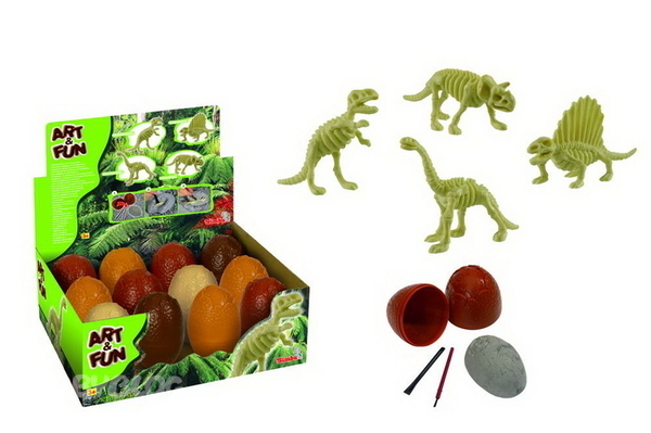Состав этого яйца достаточно плотный, моему ребенку пяти лет расковырять самому было не реально. Мы делали так: полили яйцо водой, оно стало помягче, и можно было уже заниматься раскопками. Производить раскопки удобнее обычным стеком из наборов пластилина, а тот, что идет в наборе "Археология" нам по каза лся не таким удобным.