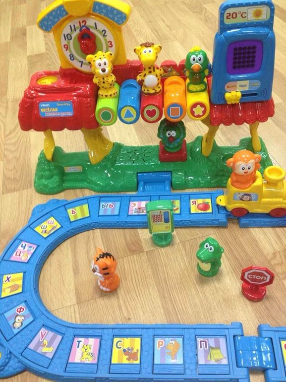 за 2715р. Вот на майтойс она 5690р.Достоинства: 2 режима игры, 33 буквы алфавита, учим цифры от 1 до 12, учимся различать цвета и геометрические фигуры, учимся понимать время, запоминаем названия животных, их голоса и особенности, 13 дополнительных фигурок, циферблат, LED-дисплей, железная дорога и паровозик, режим вопросов, совместная игра.