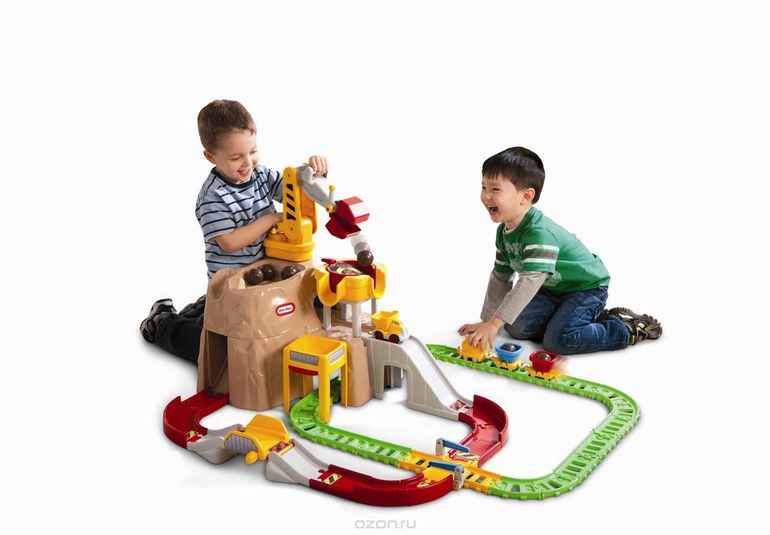 Подарочный многофункциональный игровой набор Железная дорога Little Tikes (Литл Тайкс). С этой игрушечной железной дорогой можно играть тремя способами: можно грузить валуны в вагону поезда, грузить валуны в самосвал и камнепад. Поезд может проезжать через тоннель и преодолевать опасные лавины. Игра, связанная с погрузкой-разгрузкой вагончиков хорошо развивает моторику. Поднимающийся мост и ворота. Машинки обладают эргономичной формой, удобной для детских рук. Игра Железная дорога Little Tikes прекрасно развивает воображение и создает множество возможностей для игровых сценариев, а крупные детали позволяют одновременно играть нескольким детям .