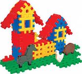 В набор входят свиньи, петухи, курицы, собаки, кошки, лошади. Животные собираются по принципу паззла из 2 - 3 частей. Загоны, сараи и домики можно строить по образцу или собственному дизайнерскому проекту. В набор входит 15 видов предназначенных для этого деталей. Из них, кстати, можно соорудить еще скамейки, поилки, кормушки и многое другое - стоит только подключить фантазию!