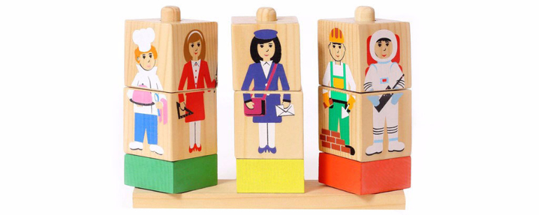 Игрушки для детей 2го года"Кубиков много не бывает!" , -сказала я и заказала сыну новые кубики.Да не простые! Нет, нет, конечно не золотые, а весьма оригинальные. Деревянные кубики на палочке "Профессии" Это и пазл, и кубик и даже пирамидка.С помощью их малыш может составлять человека определенной профессии. А когда надоест, он будет использовать кубики в строительстве башен и замков. Кубики -это одна из универсальных игрушек для любого возраста и пола ребенка.