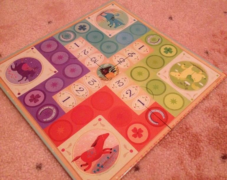 Каждый игрок размещает своих двух лошадок в конюшне своего цвета. Вывести лошадку (начать игру) можно только если на кубике выпало 6. После выхода из конюшни лошадка продвигается вперёд на то количество клеточек, сколько выпало на кубике. Есть особые правила. После того, как лошадка прошла свой тур, она размещается на последней клеточке этого пути. Далее продвигаемся к финишу. 1я клеточка - ждём когда выпадет 1. Вторая клеточка, соответсвенно 2 и финиш, цифра 3