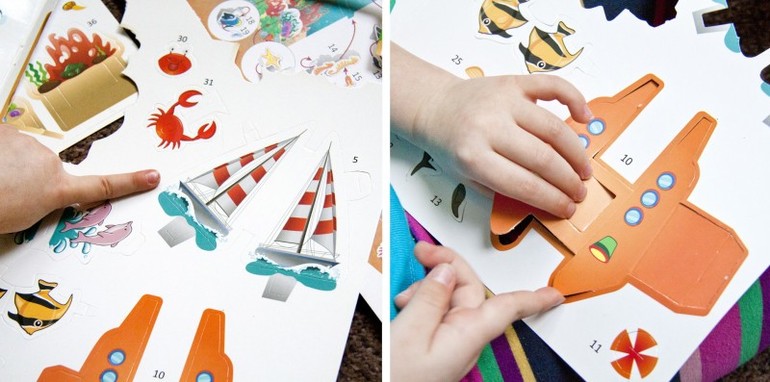 Сами детки, конечно, тут не справятся - очень много мелких деталей, которые ребенку будет сложно собрать. У нас большую часть сложила я, а Маша мне помогала выдавливать фигурки и находить их в инструкции. Большой плюс, что все можно собрать без использования ножниц и клея, иначе бы это растянулось не на один вечер - пока все вырежешь, а потом склеишь... Собирали мы его несколько часов, но в итоге получилось очень даже красиво. Единственный минус, как по мне, это отсутствие информации или хотя бы названий тех морских обитателей, которые тут представлены. Потому что Маша все время задавала вопросы: а что это за рыбка, а как она называется, а это что такое и т.д. Приходилось частично искать информацию в интернете, а было бы гораздо удобней, если бы эта информация шла в наборе вместе с конструктором.