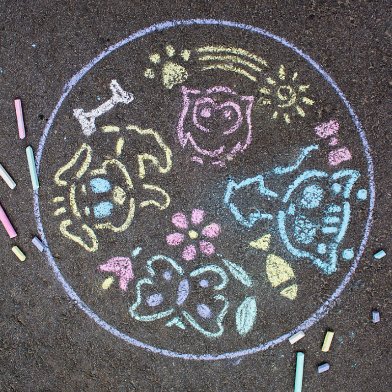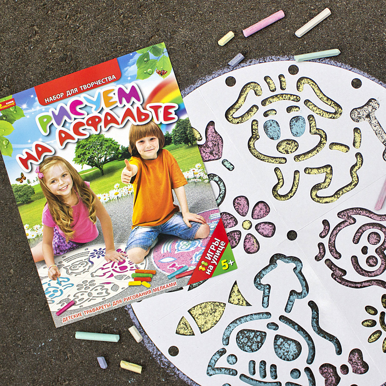 Игрушки для детей 4го годаПока не начались дожди и похолодание, которому я вполне даже рада, мы с Машей проводили очень много времени на улице и на природе. И вот как-то раз захотелось нам с остальными мамочками устроить что-то не вполне типичное для наших вечерних прогулок. А развлечение мы придумали вот какое - рисовать мелками на асфальте, и не просто, а с крутыми трафаретами, которые я давно уже присмотрела и никак мы не могли их опробовать ))