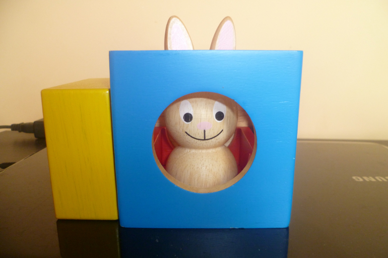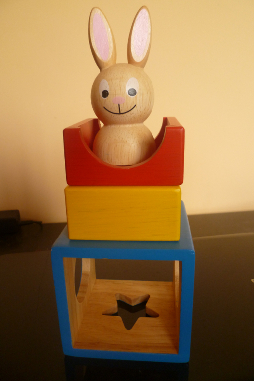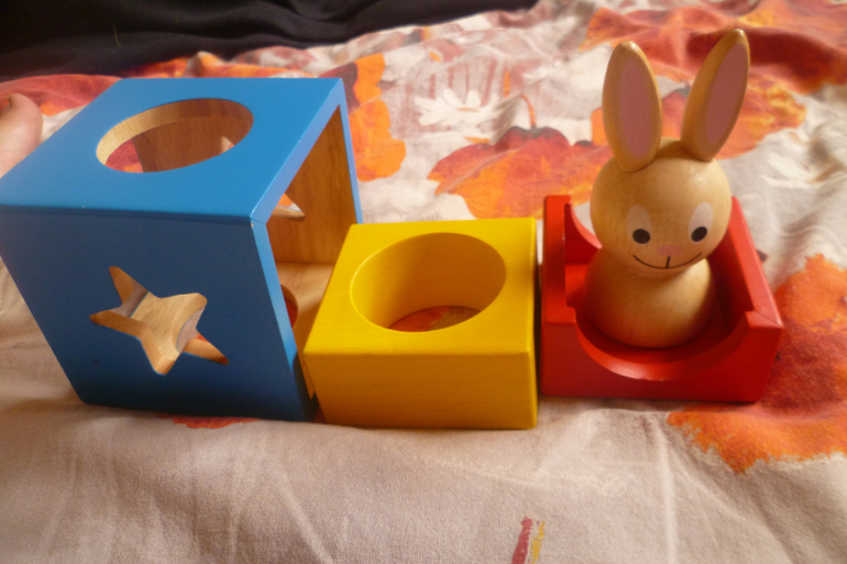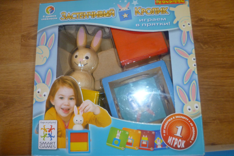 До карточек мы пока недоросли, но играем активно - ставим кролика на детальки и роняем, прячем кролика в домик и кукукаем)