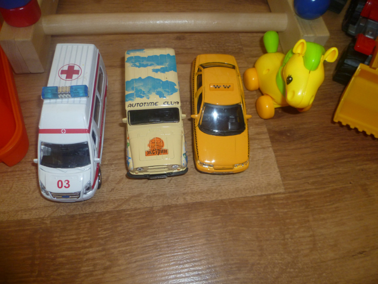 Машинки, трактор, лошадка заводная - катаем, заводим, кидаем, скорая помощь со звуком.