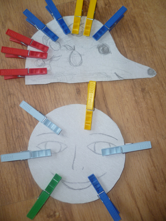 Игры с прищепками - только-только начали... пока научились их отрывать от шаблонов. Цеплять не получается - видимо неудачные прищепки взяла.