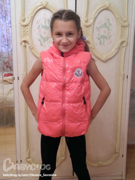 )))ага ,кроссовки точно покоя не давали, то снимала, но обувала их))))куплю ей, но позже, пока на осень есть обувь))) Монклер 10-11 Т .Это кажется, что велико, т.к одевала на майку ,под толстовку самое оно будет.Да и еще должен по идее, жилет распушится, типа пух внутри))