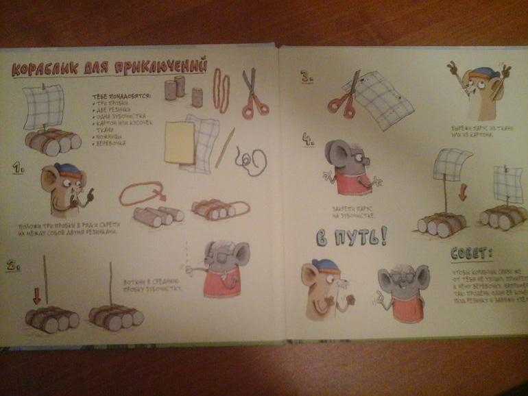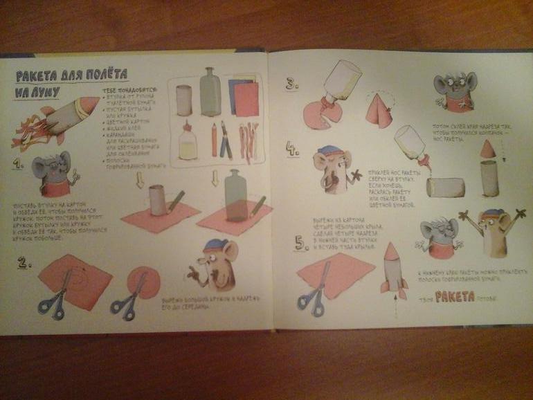 В начале каждой истории есть инструкции: как испечь блины, сделать кораблик для приключений или ракету для полёта на луну!