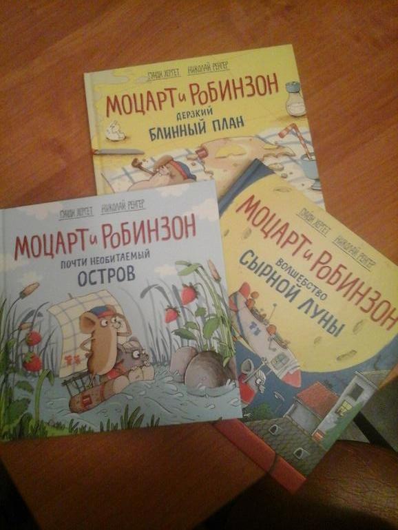 Весёлые истории о двух друзьях мышат. Моцарт - "домашняя"мышка. Робинзон - полевой мышонок. С ними ни когда не бывает скучно! Веслые и не принужденные истории. Иллюстрации очень красочные и правдоподобные на всю страницу. С кучей маленьких деталей, которые очень интересно рассматривать.