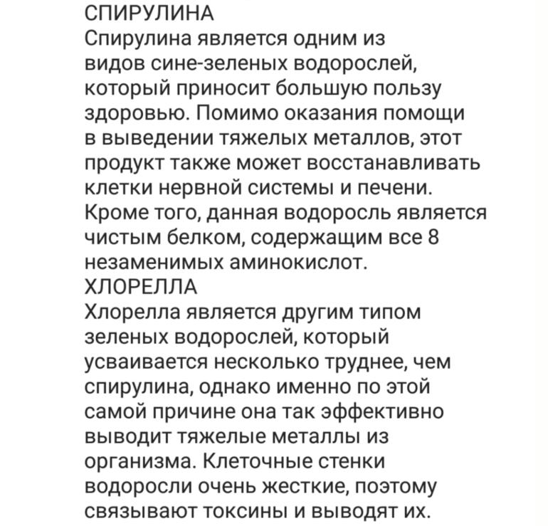 Спирулина и вообще все водоросли впитывают в себя всю гадость - тяжелые металлы и другую вредную химию из воды, если растут в загрязненной среде. Большинство производителей это Китай. Так что лучше не употреблять это, тем более для вывода тяжелых металлов.
