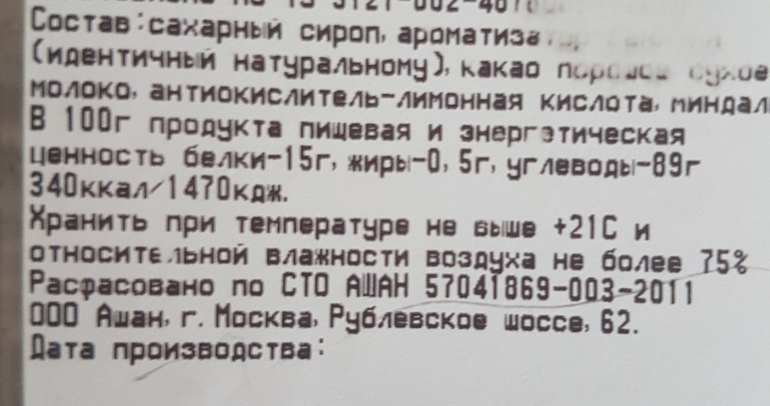 это еще не самый плохой вариант, а то как Е начинаются , так цитратами и заканчивается - на полстраницы (((( тут вот и сахар знакомый и миндаль и какао )))