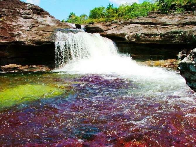 Чудеса природыКаньо-Кристалес часто называют самой красивой рекой на нашей планете. С этим трудно не согласиться — вряд ли где-то еще найдется водяной поток, который имеет несколько цветов и сотни оттенков: тут и насыщенно-красный, и солнечно-желтый, и ярко-зеленый, и темно-синий и даже угольно-черный... Из-за этой необычной особенности Каньо Кристалес также известна, как «Река пяти цветов» или «Жидкая радуга».