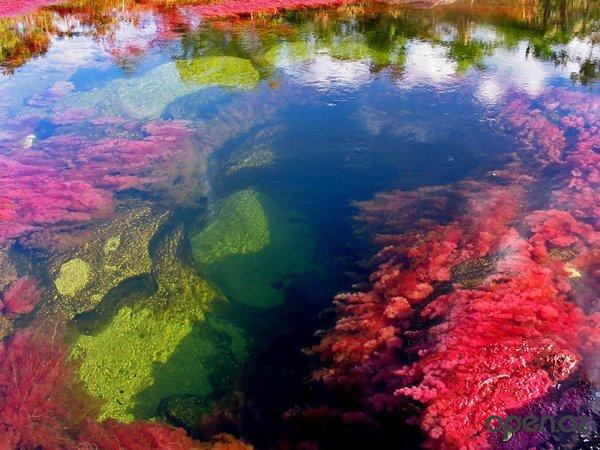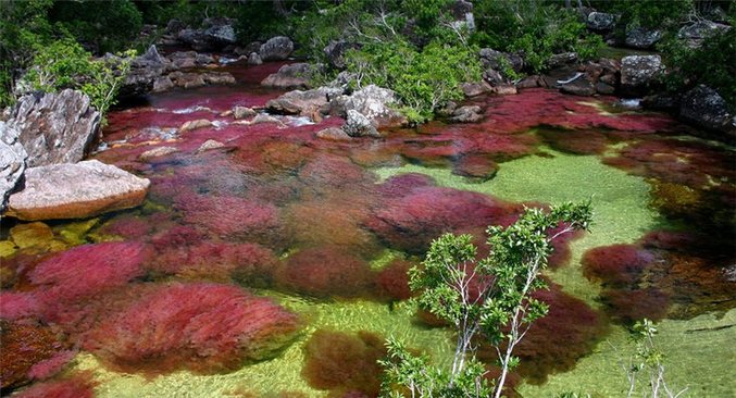 Каньо Кристалес переводится с испанского как «Кристальная река». Воды ее действительно чисты, как горный хрусталь, а буйство красок имеет довольно оригинальное происхождение. Дело в том, что Каньо Кристалес населяют уникальные местные водоросли Macarenia clavigera. Им-то и обязана река своей удивительной цветовой гаммой.