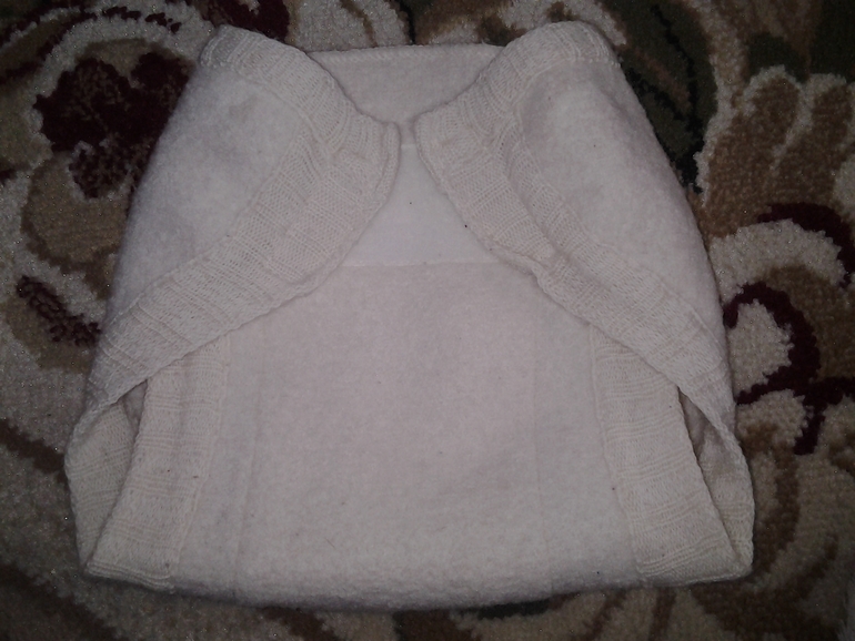 Елена: О, спасибо за слово! Во всей этой конструкции должно быть больше шерсти, потому что в среднем шерсть раза в три больше впитывает, чем хлопок…Впитываемость увеличивается. А размеры подгузника - не увеличиваются. Это все благодаря дополнительному шерстяному вкладышу…