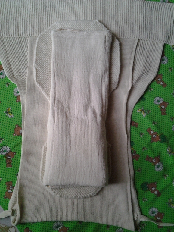 Подгузник своими рукамине секрет, что я очень люблю мериносовую шерсть,пару месяцев назад связала вкладыш, проланолинила..но применения он не нашел...идей было много но руки не доходили, на днях сделала так: на ночь не захотела шерстяные штанцы и подложила под впитывающий вкладыш самовязанный из шерсти мериноса, вязала в 2нити (100гр 400метров)...в эту ночь не знаю почему сын посикал 3 раза, и когда я меняла вкладыш был мокрющий, шерстяной слегка влажный, а сам подгуз сухой, хотя почти всегда подгуз тоже приходится заменять;)) для девочек я бы не советовала анатомический шерстяной,т.к. наверно протечет между ножками...мальчик то писает вперед, а девочки вниз...в общем таким образом за ночь ушло 3 толстых вкладыша ( марля+байка,иногда просто марля дисана),1 подгуз и 1 шерстяной, потом я его просто просушила;)) на 2 фото пыталась толщину показать, третье фото для примера...кстати вкладыш дисана переделанный в префолдс;)