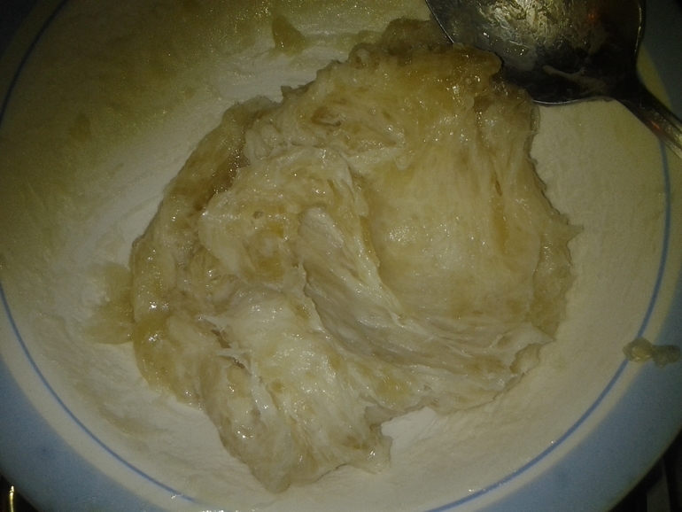 от тепла мыла ланолин начнет таять и мы все это быстро быстро перемешиваем, после ввода ланолина перемешивать станет немного легче, но когда вы почувствуете что ложка снова тяжело "ходит", значит все, готово!