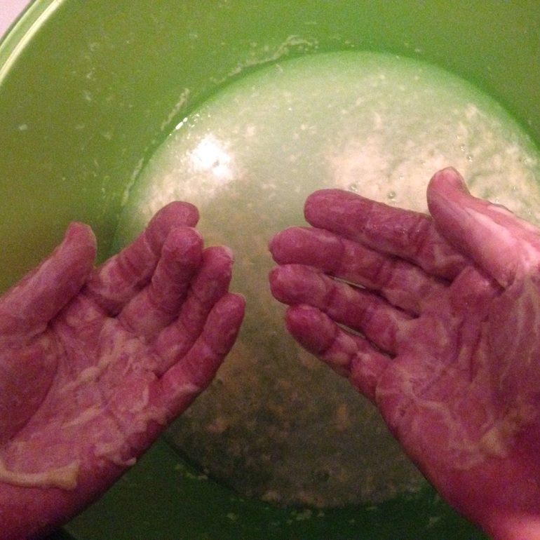 И у меня недавно состоялся первый опыт. Тоже с водкой и горячей водой )) и тоже намаЗЯЗЯ руками на штанишки и раствора во все поверхности. Жирненькие внутри. Но это пройдет за пару носок.
