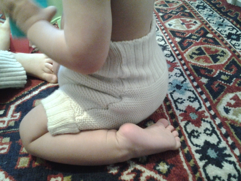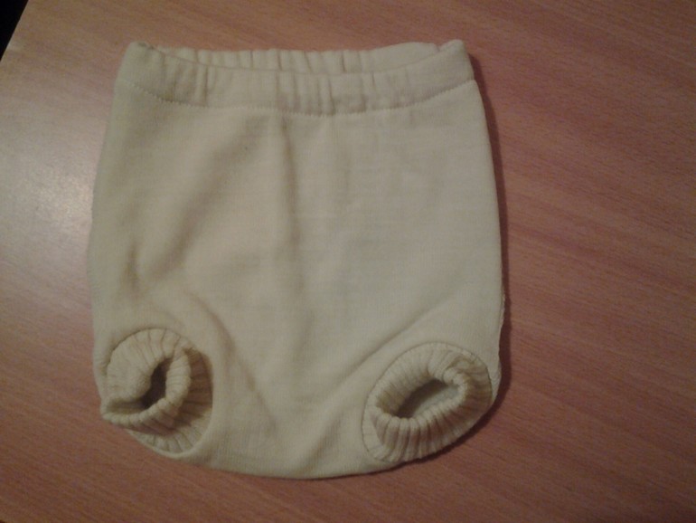 В таких штанишках мы спим ночью. Под ними скрывается подгузник с несколькими вкладышами. Чтобы шерстяные штанишки не пропускали влагу и не дали малышу записать пижамку или спальное место, я обработала их ланолином. Как это можно сделать описано здесь. Что мне нравится в шерстяных покрытиях помимо всех остальных плюсов, так это то, что их не нужно часто стирать, я это делаю раз в несколько месяцев. Ведь шерсть самоочищается и после того, как малыш записал ее, нужно лишь проветрить штанишки или любую другую вещичку) Поэтому я очень полюбила термобелье Engel и рейтузы Наппи) Про рейтузы отдельно напишу)