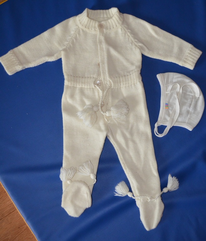 Хорошо будет от 62см и до почти 74см роста малыша (3-9 месяцев примерно), из натуральной пряжи (перуанская альпака) - очень мягкий и совершенно не колючий - хочу хоть бы 800 руб. (это половина от его начальной стоимости)