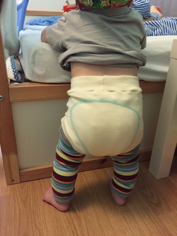 После экспериментов с фланелевым пиратским подгузом надела с анатомическим шторхом.