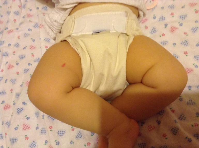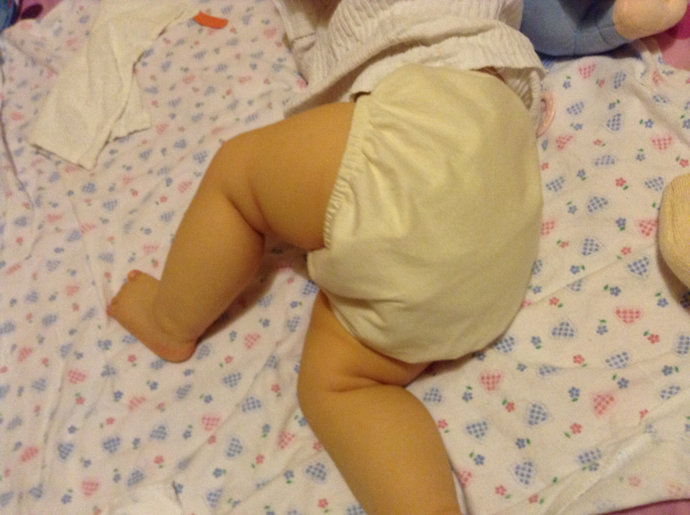 Обложка не объемная, с фланелевым фланелевым вкладышем под колготками смотрелась как обычные тоненькие трусики.( хотя сама обложка нам пока большевата вроде)