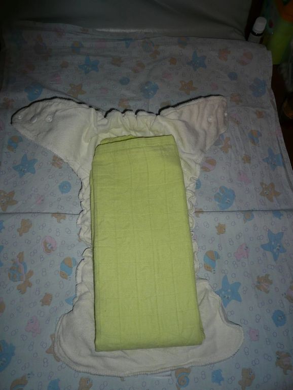 Вот готовый подгузник. Получается менее толсто, чем куча вкладышей, и куда как равномерней! Никаких бугров и т.д.