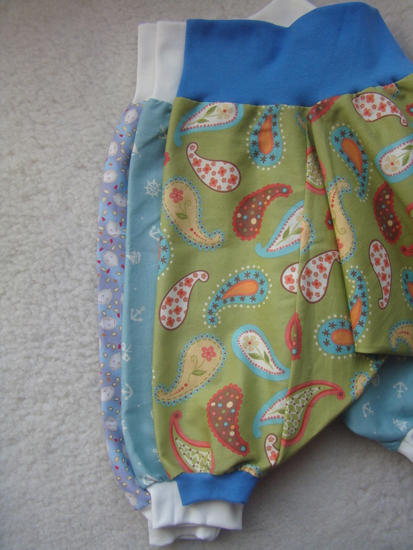 Штаны алладины показались странными по размеру. Были куплены 3 расцветки: с зайками(размер L), с якорями(размер S) и огурцы(размер S).