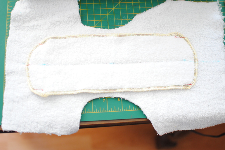 впитывающий слой: сшиваем между собой, пришиваем к внутреннему слою штанов, совмещая центральные линии.