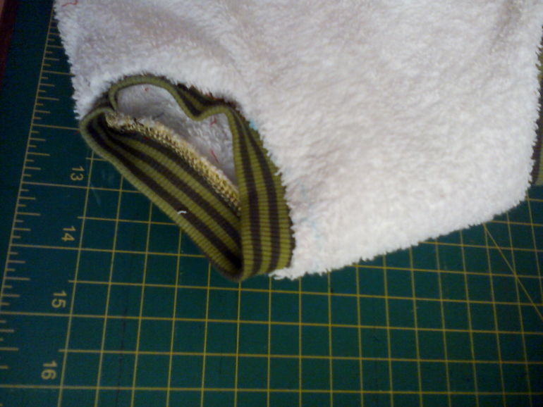 На картинках оранжевый велюр для внешнего слоя, махра для внутреннего и для впитывающего слоя, рибана для обтачки.