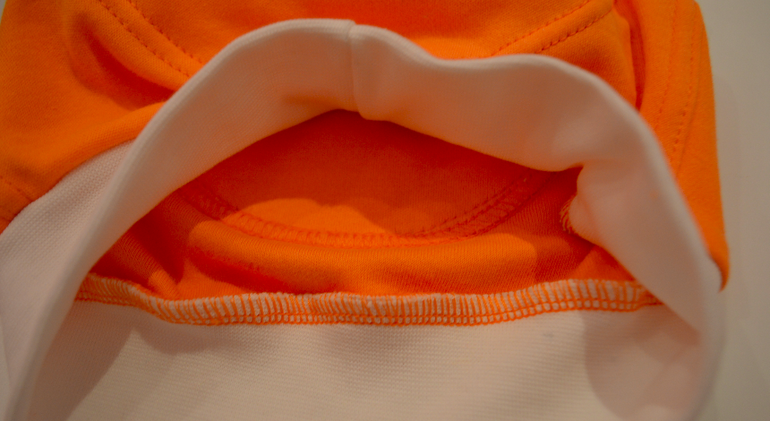 Попа изнутри. Вкладыш зашит под трикотаж. Шов плоский.