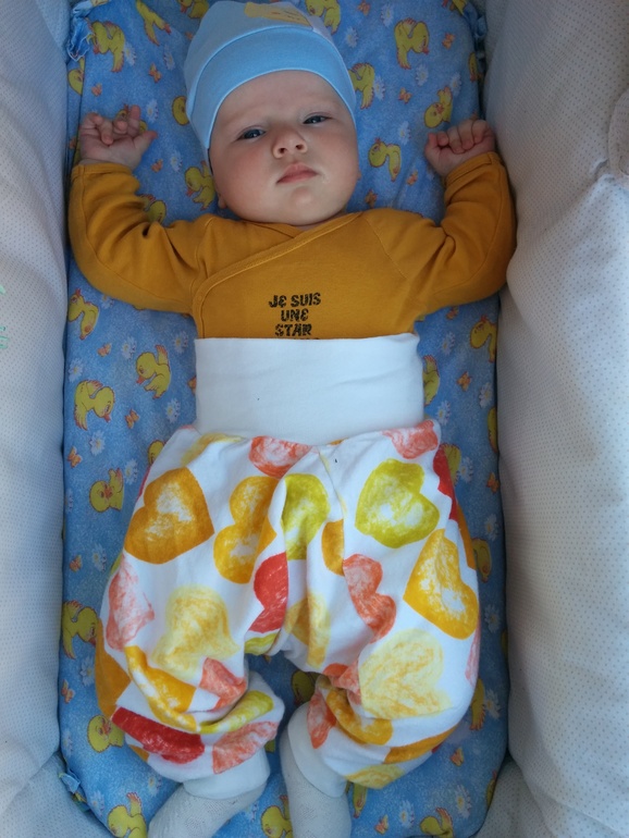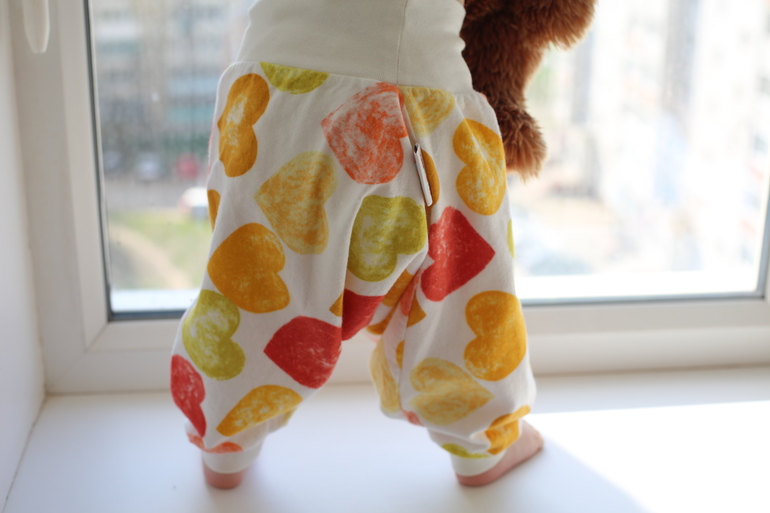 Резинка широкая, не сдавливает пузико и в то же время хорошо фиксирует штаны на талии.